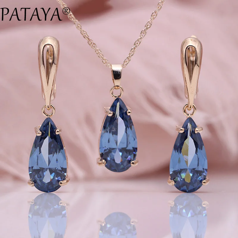 PATAYA Новый Синий капли воды серьги подвески ожерелья для мужчин наборы ухода за кожей 585 розовое золото натуральный циркон для женщи