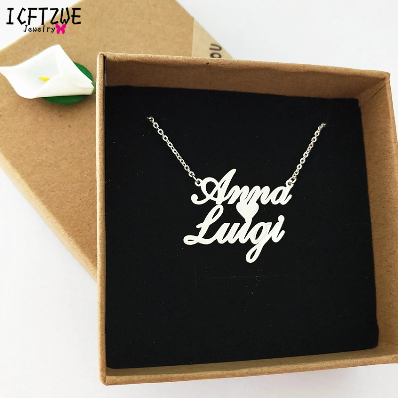 Обычай украшения Любой персонализированные двойное название Цепочки и ожерелья s Для женщин Для мужчин цвет серебристый, Золотой розовое с...