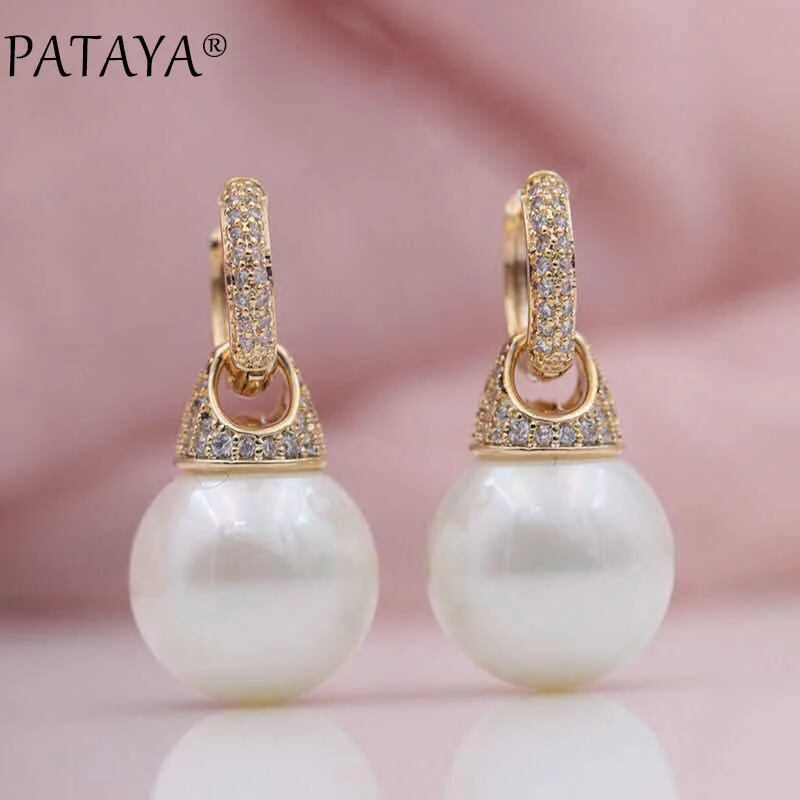 PATAYA Новый микро-воск инкрустация натуральный циркон 585 розовое золото в виде ракушки жемчуг Multifunction Висячие серьги для женщин Свадебная веч...