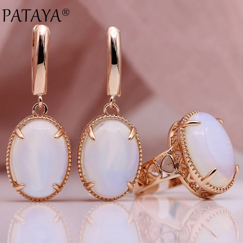 PATAYA Новый лунный камень Натуральный камень комплекты Для женщин свадебные полый прекрасно Модные украшения 585 Золотой в виде Розы длинные с...