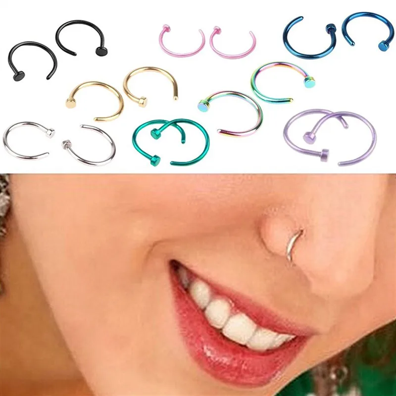 Новинка, 4 цвета, 1 шт., простая распродажа, хирургическая сталь, поддельные пирсинг, шпильки, сексуальные, на 6/10 мм, зажим, маленький обруч, открытый нос, кольцо, тонкая титановая сталь