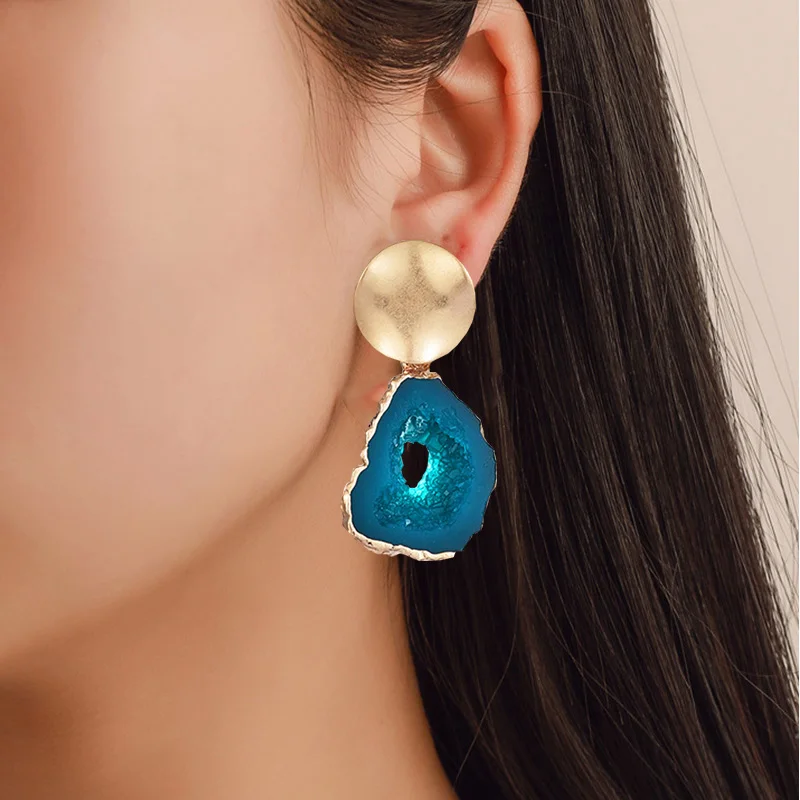 Новинка, корейские винтажные геометрические акриловые Висячие серьги для женщин 2019, Модные металлические геометрические золотые висячие серьги, ювелирные изделия