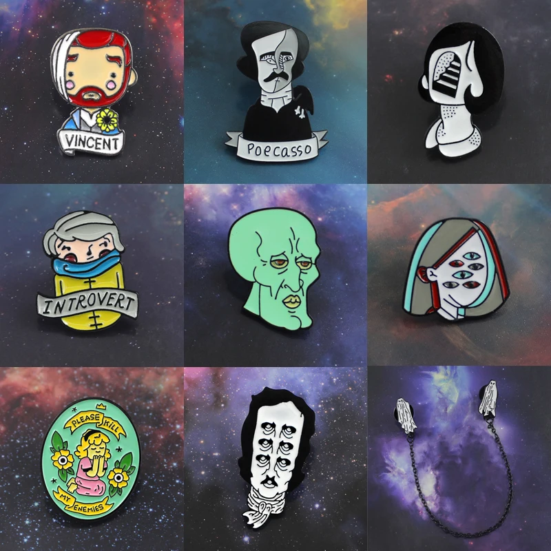 Художник Автопортрет брошь Аллан полюс Ван Гог тайна девушка глаз Squidward Интроверт мальчик принцесса молитва призрак эмаль значок