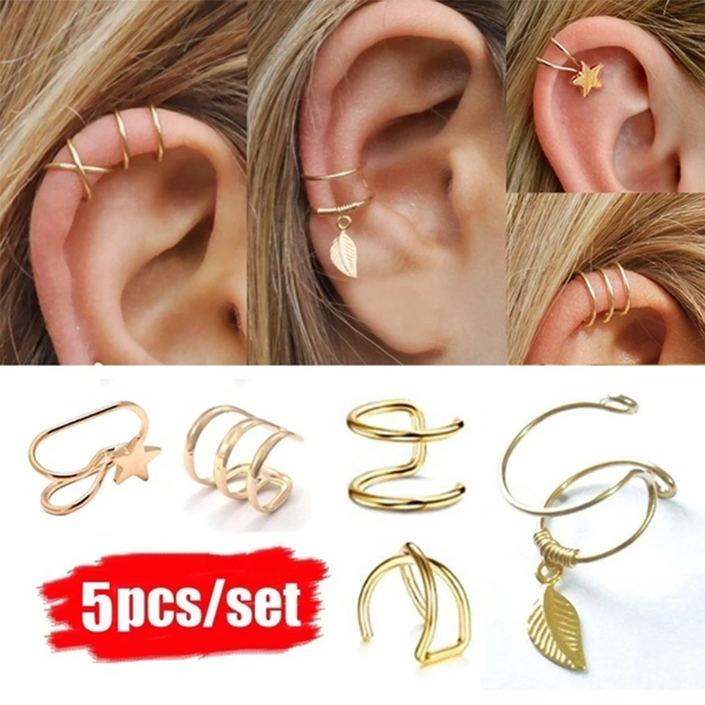 5 шт./компл. Кафф серьги-клипсы поддельные серьги, Надеваемые На ушной хрящ для Для женщин Для мужчин клипсы пирсинга