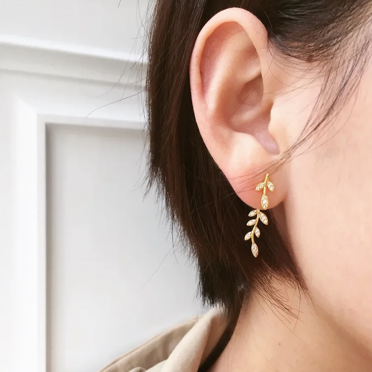 Гламурные серьги распродажа мода новый темперамент Сетка Красный Элегантный Кристалл Листья до и после ношения двойного назначения стиль серьги