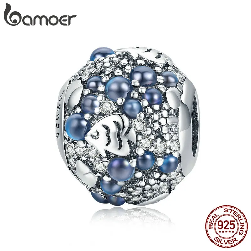 BAMOER, настоящий 925 пробы, серебряный, подводный мир, рыба, океан, бусины, кубические циркониевые амулеты, подходят для бусин, браслет, ювелирное изделие SCC932