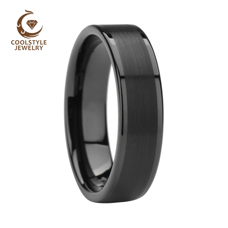 6 мм женские мужские черный вольфрам карбида кольца обручальные кольца трубы с щеткой и полированные края