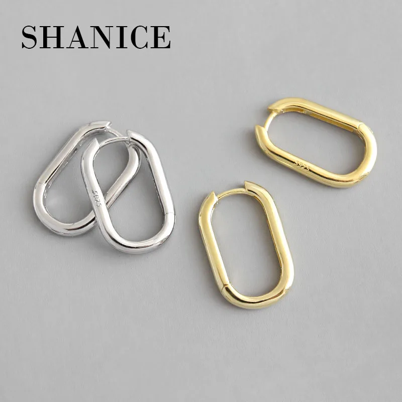 Шанис 100% Серебро 925 пробы в стиле панк INS минимальным геометрический Овальный Круглый Открытый обруч серьги для Для женщин ювелирные издели...