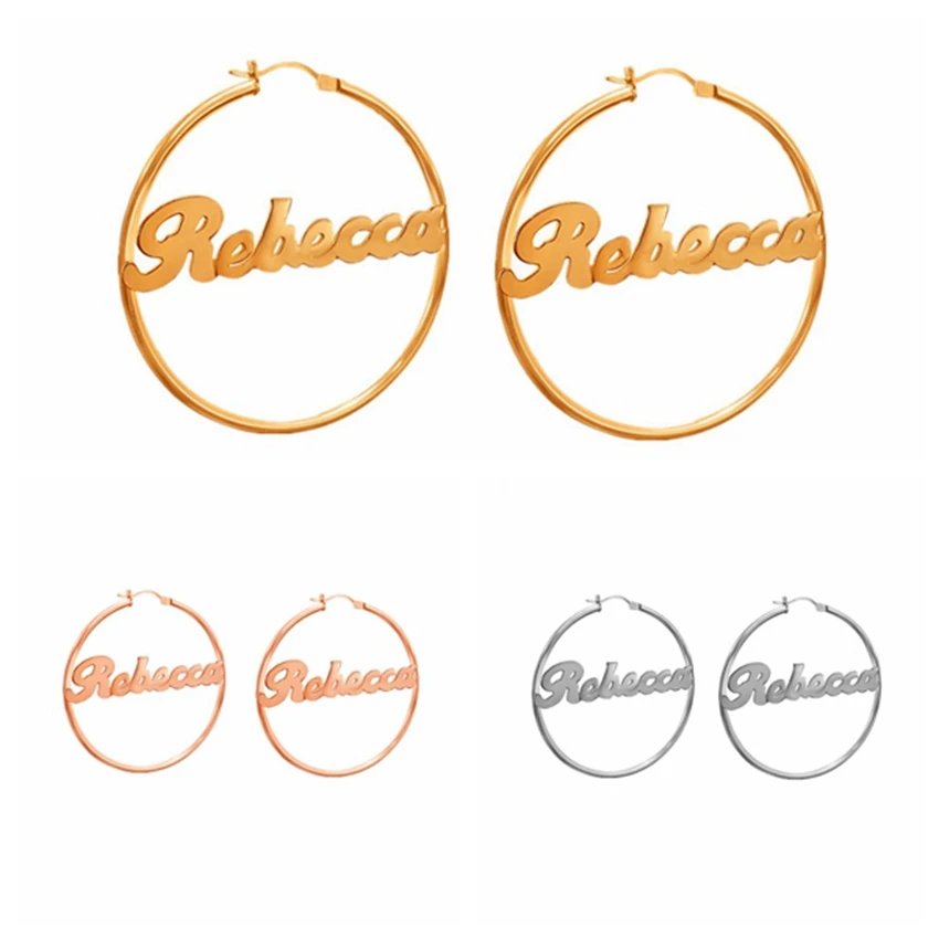 1 пара розовое золото обычай имя серьги для женщин индивидуальные именная табличка из нержавеющей стали кольца серьги, ювелирные изделия ...