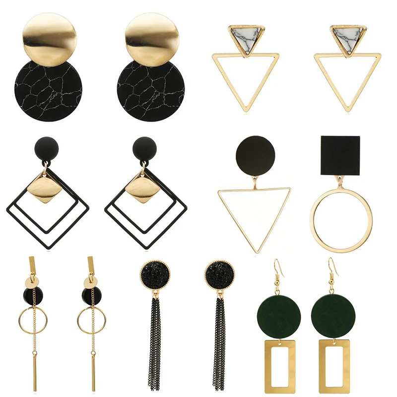 2019 новые модные каменные серьги черно-белая, с геометрическим узором Серьги Круглый Треугольник Дизайн панковая заклёпка серьги ювелирные ...