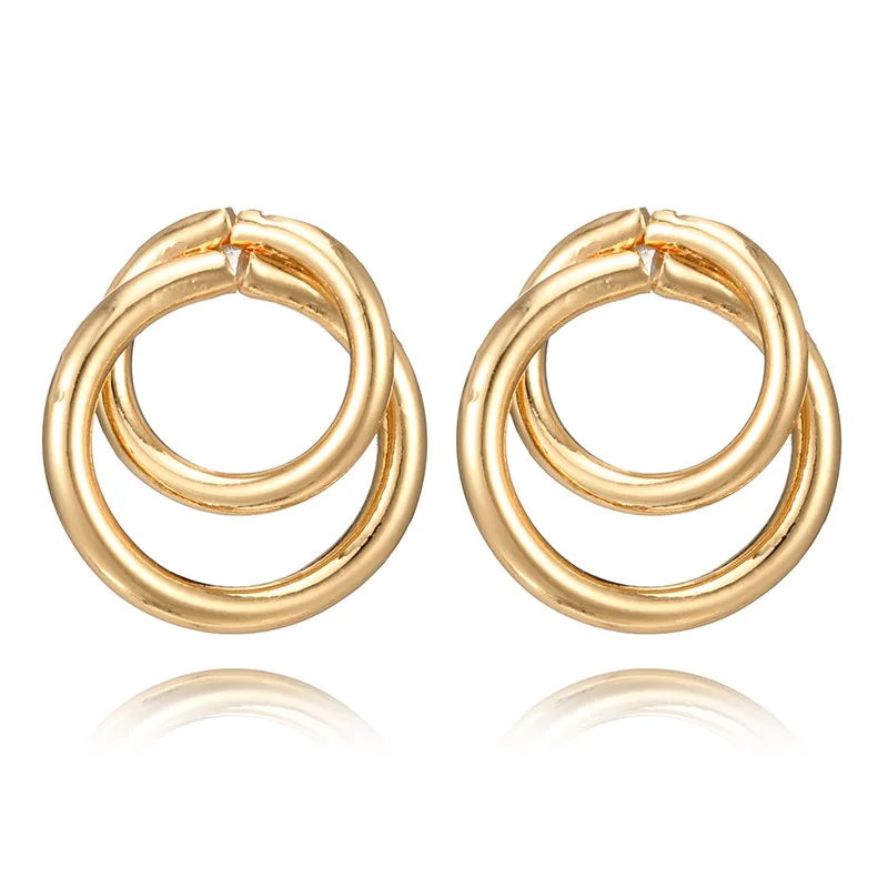 EK712 геометрический двойной Круглый круглые гвоздики серьги для Для женщин ювелирные изделия серьги Модные цвета: золотистый, серебристый Ц...