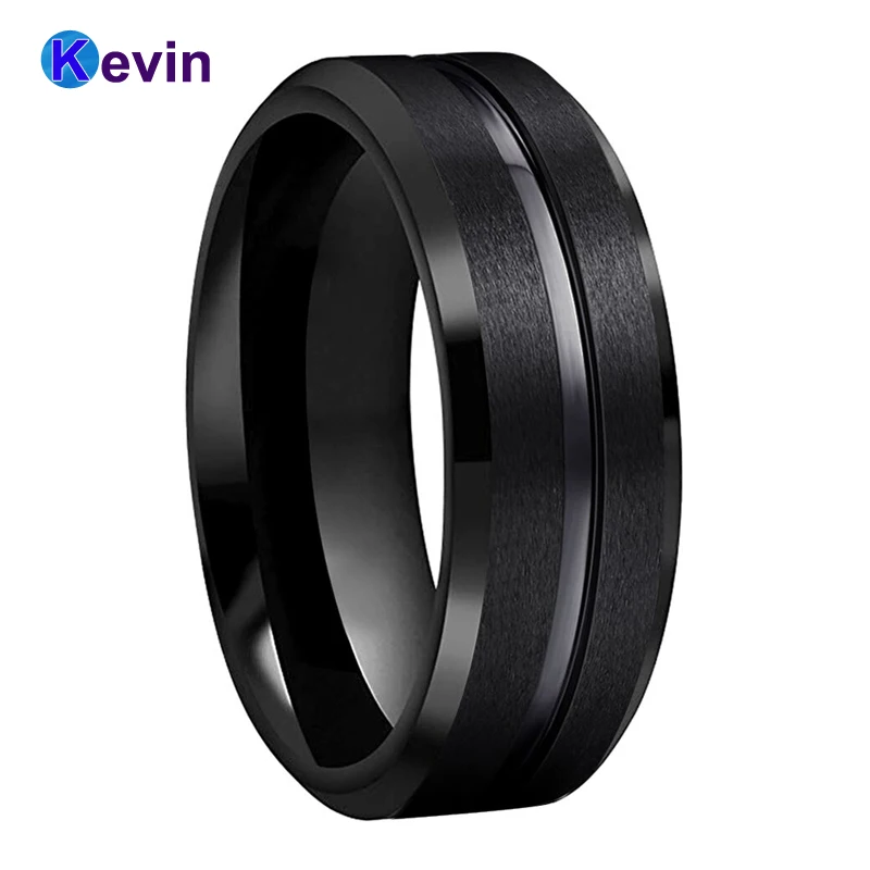 Классический 8 мм черный вольфрамовый Карбид обручальное кольцо с матовой отделкой рифленый центр комфортная посадка