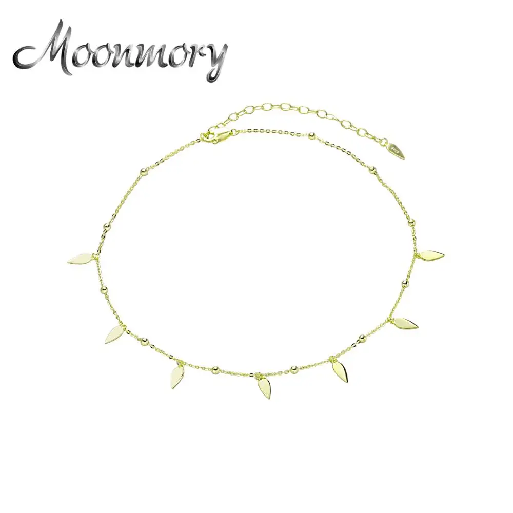 Moonmory, рождественский подарок, Золотое мини-Ожерелье-чокер в виде Клыка для женщин, 925 пробы, серебряная цепочка с листьями, ожерелье, регулир...