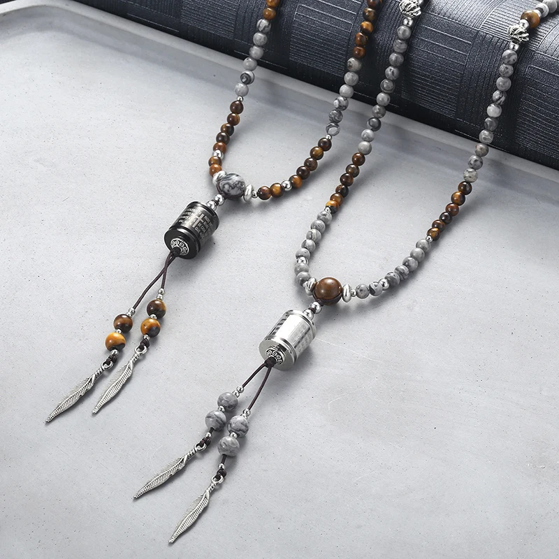 Женское мужское ожерелье с натуральным камнем из бисера стальное перо испанская Библия Шарм длинное ожерелье валентинки подарки дропшиппи...