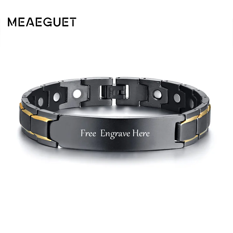 Персонализированные Для Мужчин's Нержавеющая сталь Магнитная здоровья личная информация Id браслет для Для мужчин терапии биомагнитных ман...