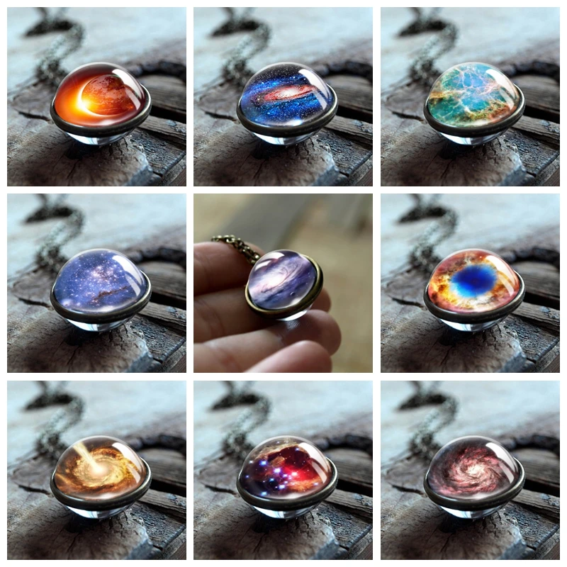 2019 новый Galaxy двухсторонний кулон внешнее пространство цепочки и ожерелья украшения Вселенная стекло подвеска с рисунком ручной работы s