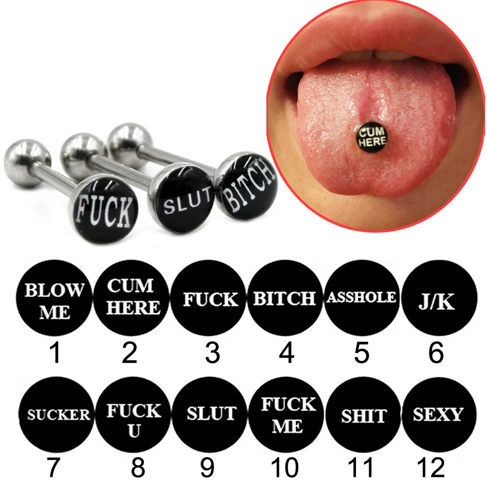 Showlove-1 шт хирургическая сталь разные эпоксидные логотипы грязные нехорошие слова пирсинг языка Пирсинг-штанга для языка кольцо Бар Ювелирн...