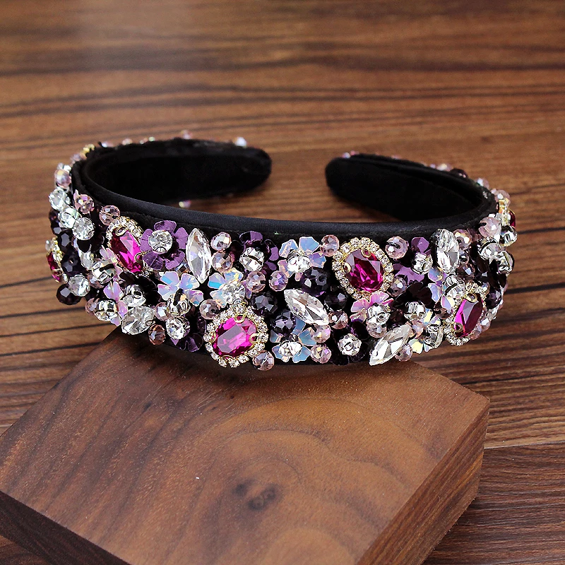 Ручная работа, полная фуксия, хрустальные бусины, свадебная повязка на голову, Бриллиантовая лента для волос, модные стразы, аксессуары для ...