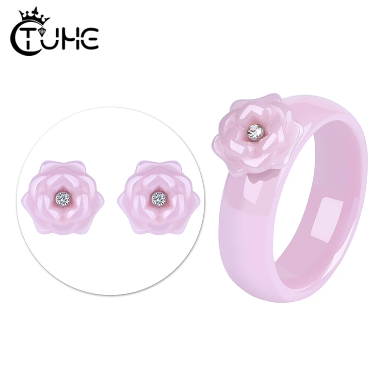 Набор ювелирных изделий, серьги и кольца из циркония ручной работы из керамического материала