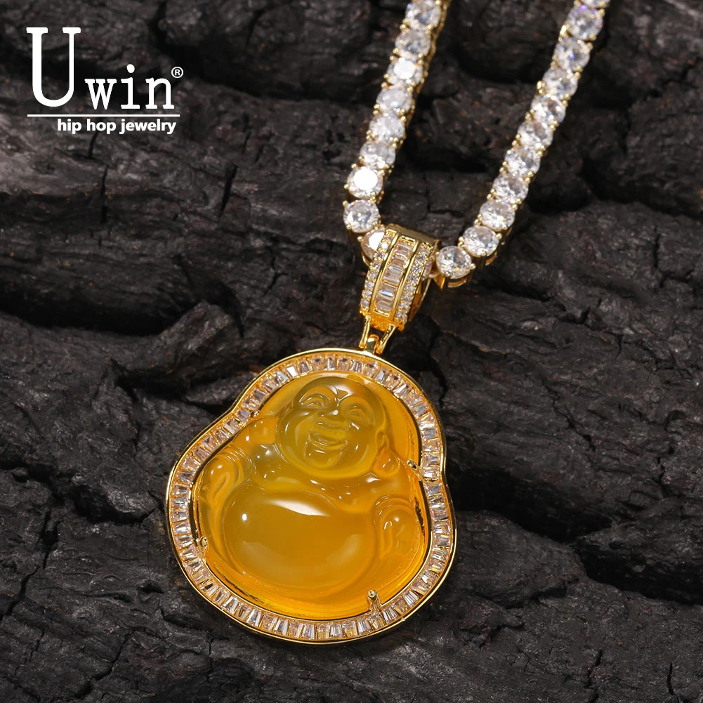 Uwin голубой нефритовый Будда кулон с багетом AAA кубический циркон хип-хоп ожерелье теннисная цепочка хип-хоп панк ювелирные изделия