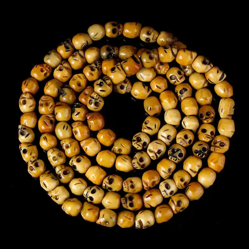 108 шт бусины в форме черепа кости яка, Череп, вырезанный вручную молитва из камня Тигриный Античная бусины в форме черепа для хэллоуина украшения Тибет четки оптом по низкой цене 6 мм BRO863