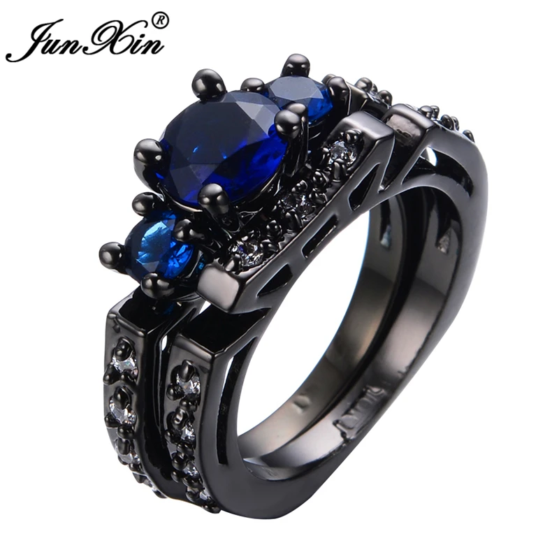 Junxin синее кольцо комплекты Круглый Модные Винтажные свадебные кольца для мужчин и женщин черное золото ювелирные изделия дружбы подарки
