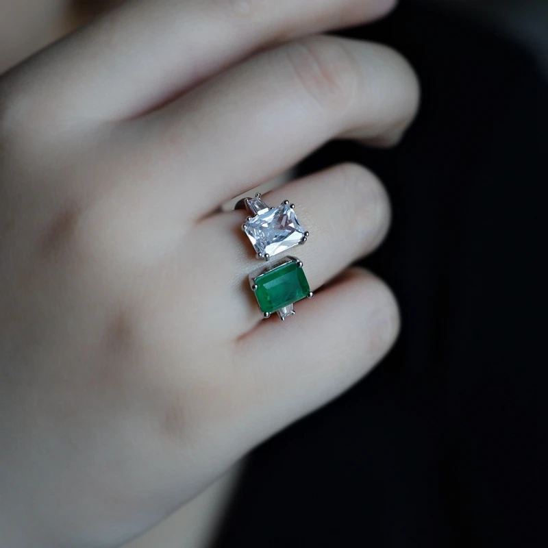 Роскошное зеленое Открытое кольцо для женщин 5А кубический циркон серебряный цвет зеленый Fusion Stone свадебное украшение для невесты модное ювелирное изделие