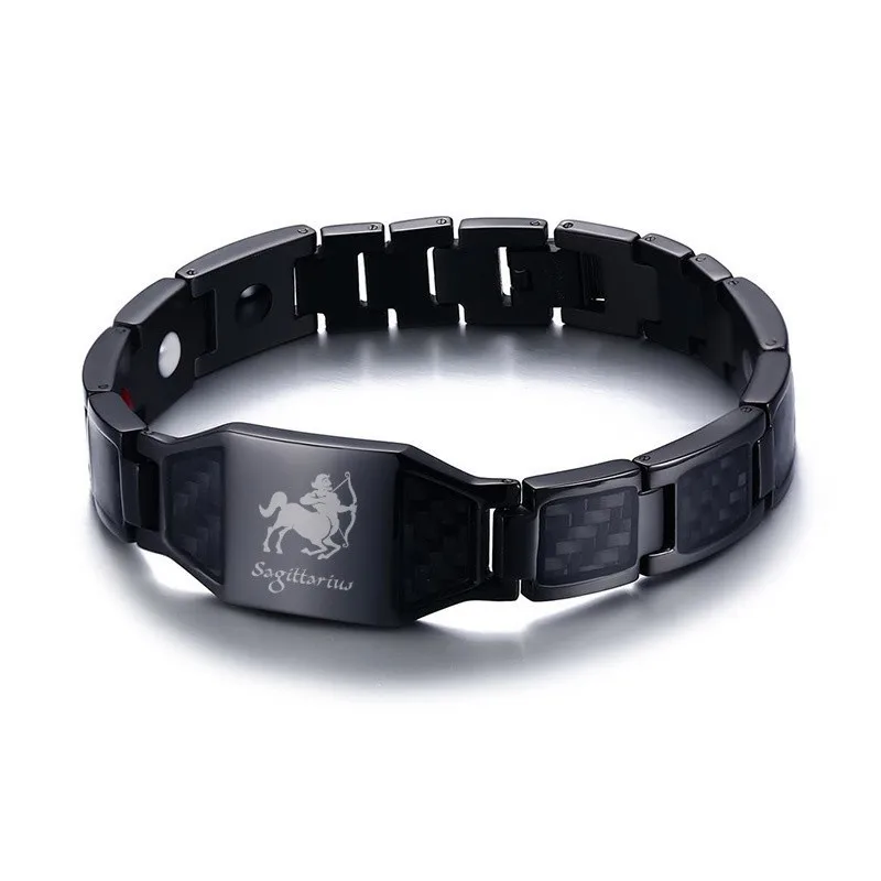 Индивидуальные созвездия Зодиака Стрелец Черный Нержавеющая сталь углерода для мужчин браслет био магнитотерапия роскошный подарок