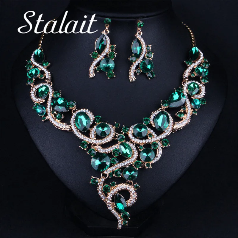 Аксессуары многоцветные свадебные комплекты ювелирных изделий для женщин подружки невесты комплект ювелирных изделий золото-цвет кристал...