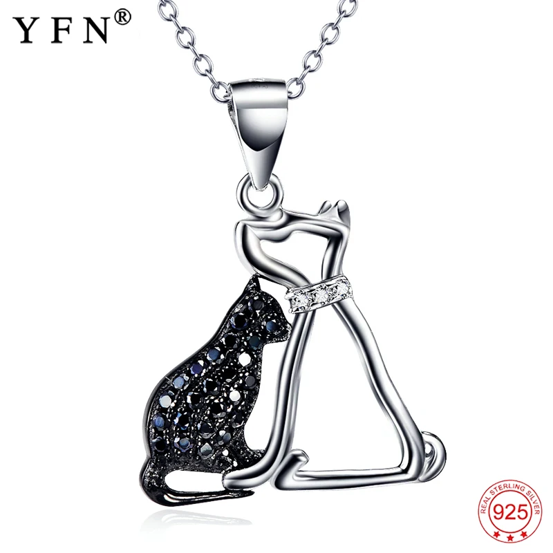 Подлинная стерлингового серебра 925 Цепочки и ожерелья Cat & Dog Jewelry черный кубический цирконий Цепочки и ожерелья s & Подвески для Для женщин ...