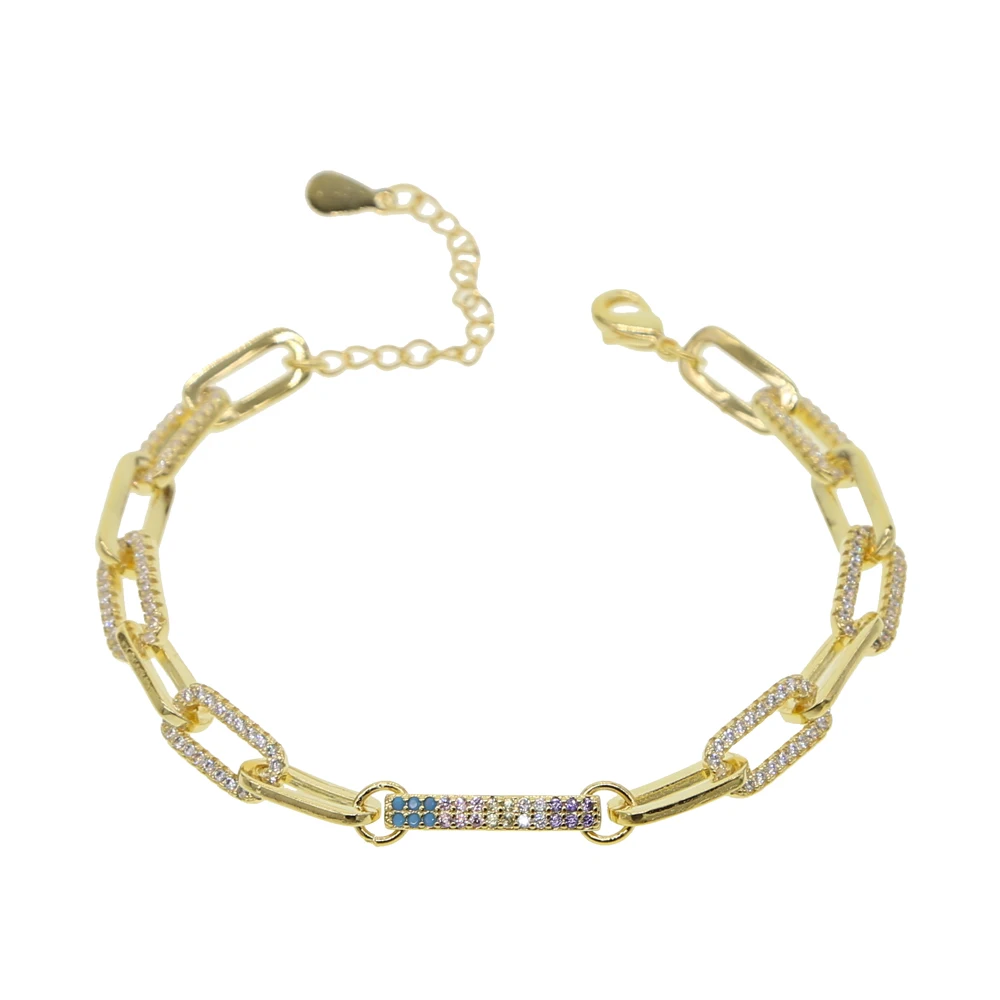 Модный женский браслет в стиле хип-хоп золотого цвета с разноцветными фианитами