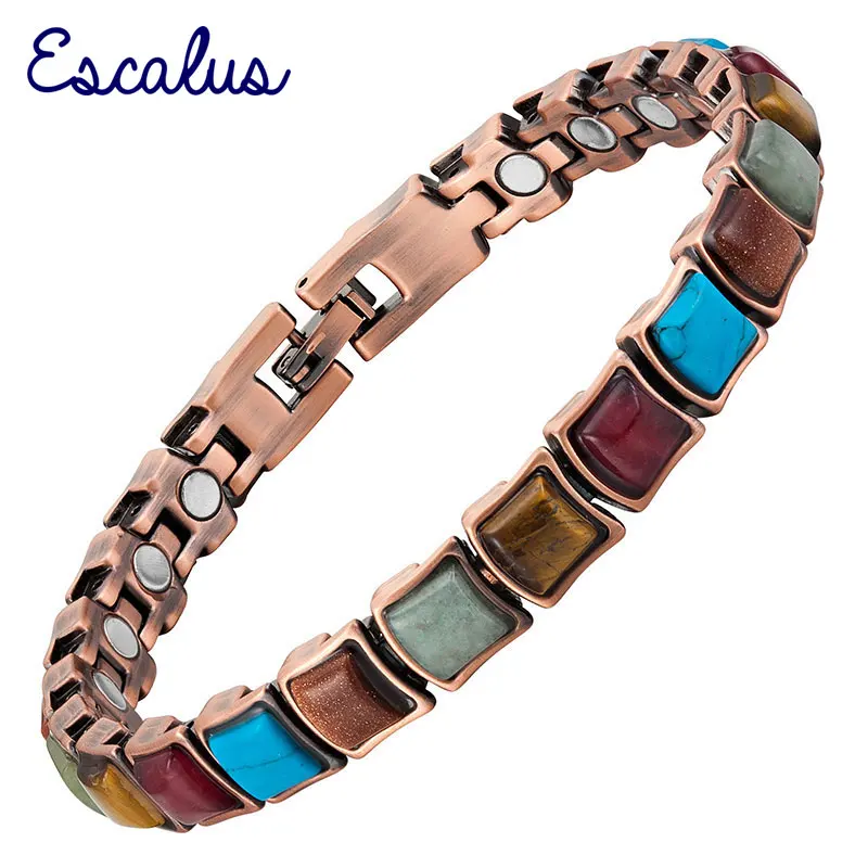 Escalus модные антикварные медный магнитный браслет для женщин 21 шт. магниты 23 шт. 5 цветов камни Шарм Браслеты Браслет