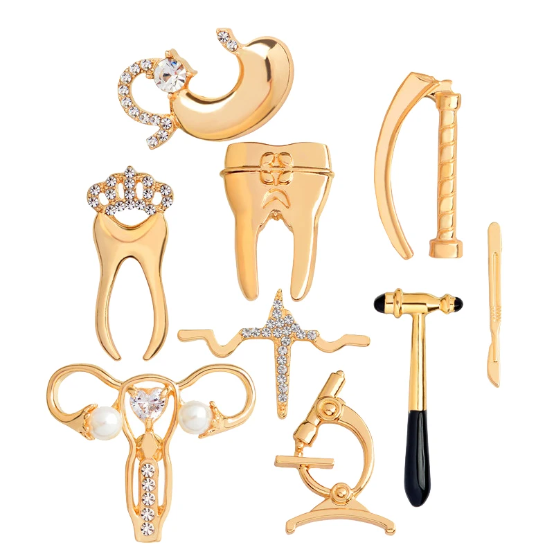 Кристалл uterus микроскоп золото серебряные ювелирные изделия спецодежда медицинская Броши коллекция скальпель желудка зуб шпильки д