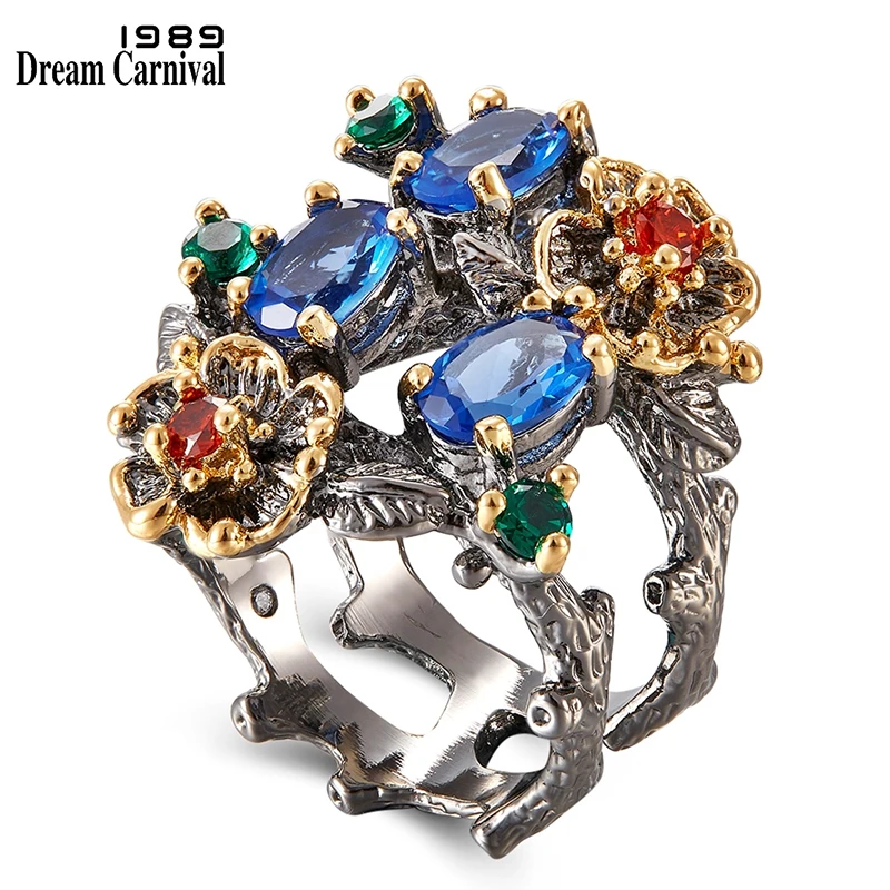 DremCarnival 1989 стильные украшения вечерние украшения крупное кольцо камень кубический цирконий много камней большое кольцо повседневное кольцо-цветы медное кольцо винтажное кольцо ювелирное изделие женственное