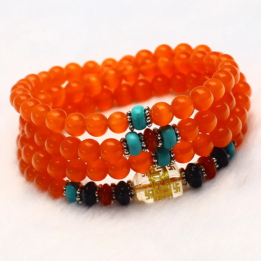 Оптовая продажа 6 мм 108 шарик натуральный красный оранжевый кошачий глаз кристаллами и круглым Талисманы Lucky подарок Браслеты для Для женщин...