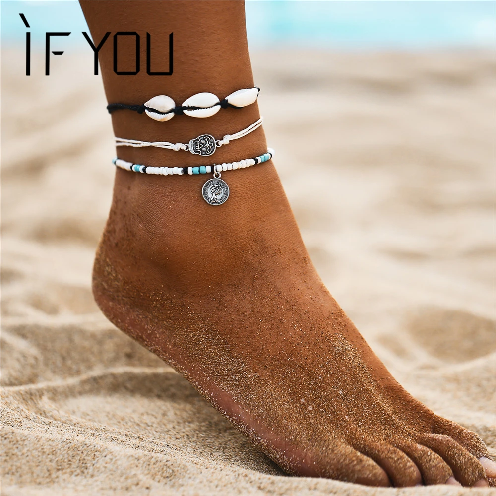 Если вы Богемия многослойные украшения для ног браслет для ног дам для женщин Boho пикантные модные летние пляжные мужчин ножной браслет ювел...