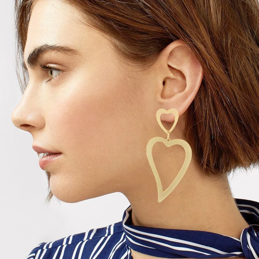 EK359 преувеличенные полые двойные длинные серьги в форме сердца для женщин корейские ювелирные изделия металлические Длинные Серьги Brincos Ро...
