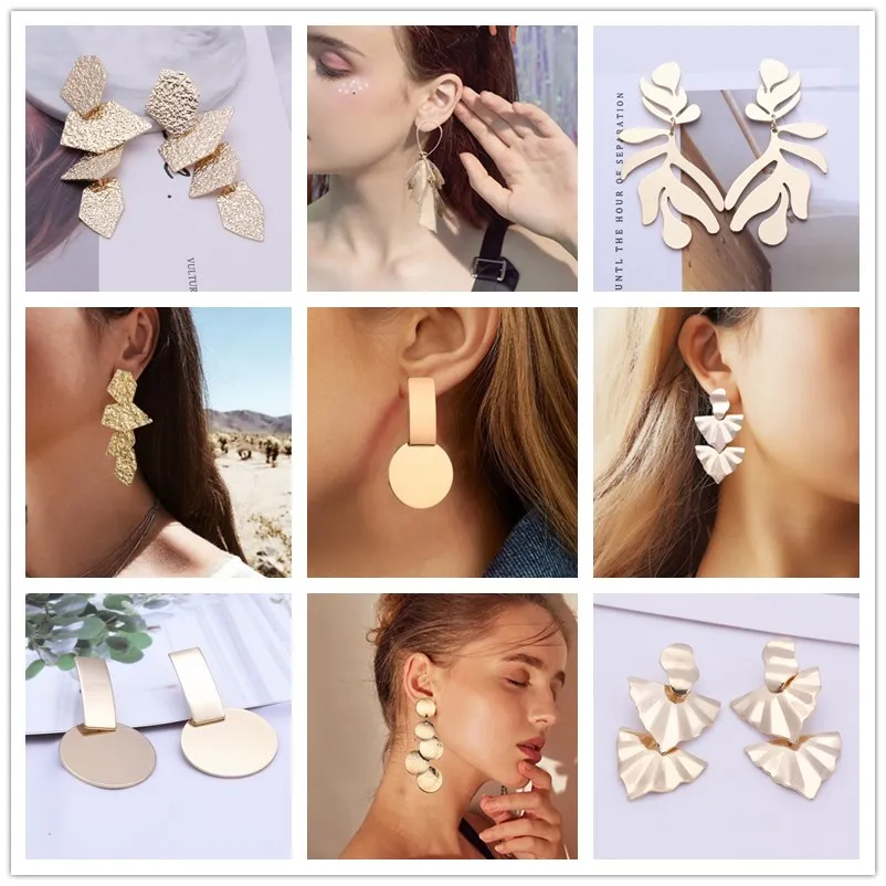 Массивные серьги 2018, Модные металлические серьги для женщин, золотые и серебряные ювелирные изделия, простые Винтажные висячие серьги