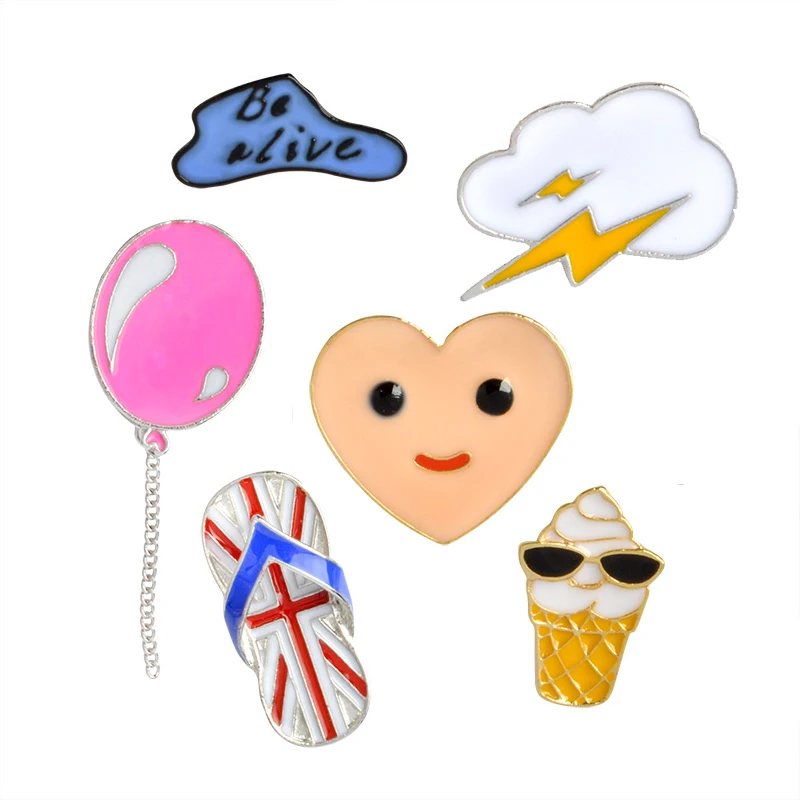 Мультфильм воздушный шар облака сердца усмешки мороженое тапочки брошь металлическая Глянцевая контакты кнопку мешок куртки воротник биж...