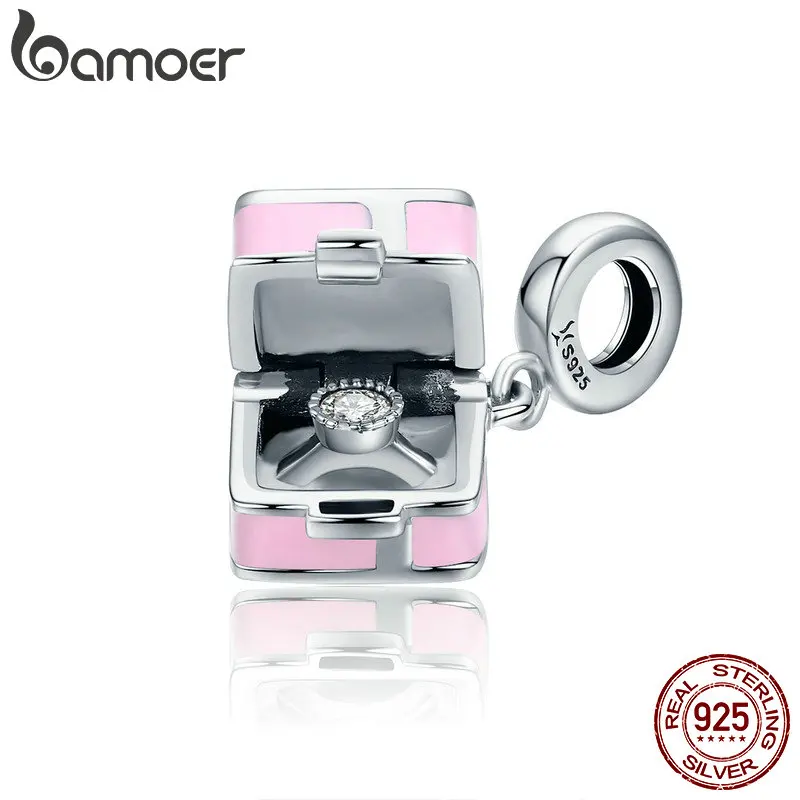 BAMOER, 100% 925 пробы, серебряная романтическая розовая коробка, Marry Me Surprise, подвеска, подходит для женщин, браслет, сделай сам, для изготовления ювелирных изделий SCC549