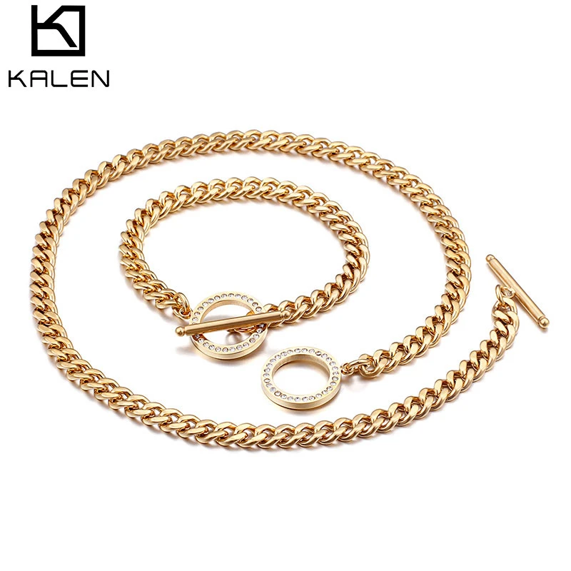 KALEN Нержавеющая сталь Femme Ювелирные наборы классические Tri-Цвет браслет и Цепочки и ожерелья комплекты Для женщин соединения со стразами це...