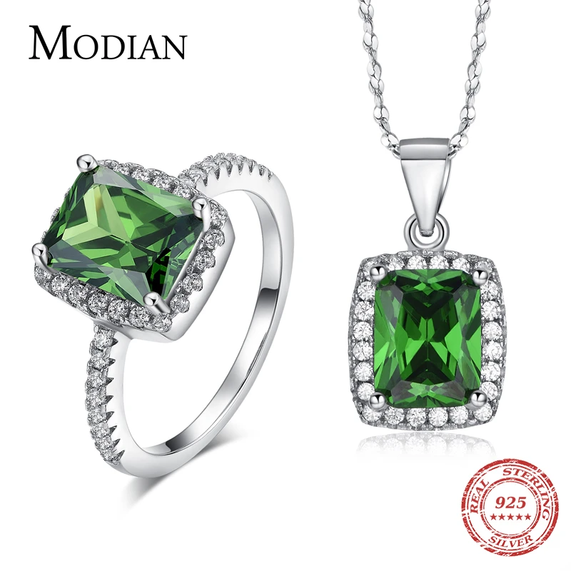R & J 2016 Новинка бренд 925 пробы серебро комплект ювелирного изделия с натуральным камнем кристалл кольцо кулон для помолвки модные свадебные ...