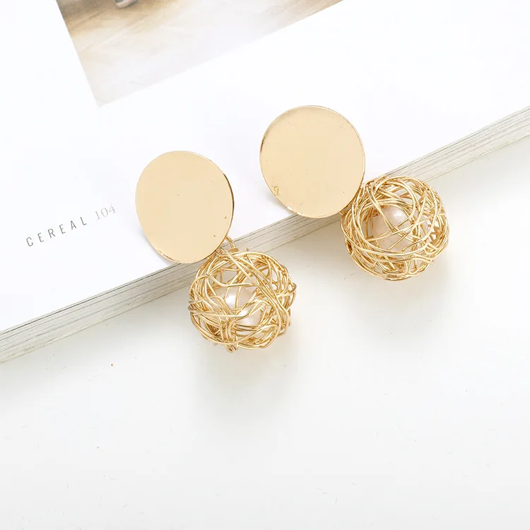 E191 Новая мода висячие серьги для женщин золотой цвет круглый шар геометрические серьги для праздничный свадебный подарок оптовая продажа уха ювелирные изделия