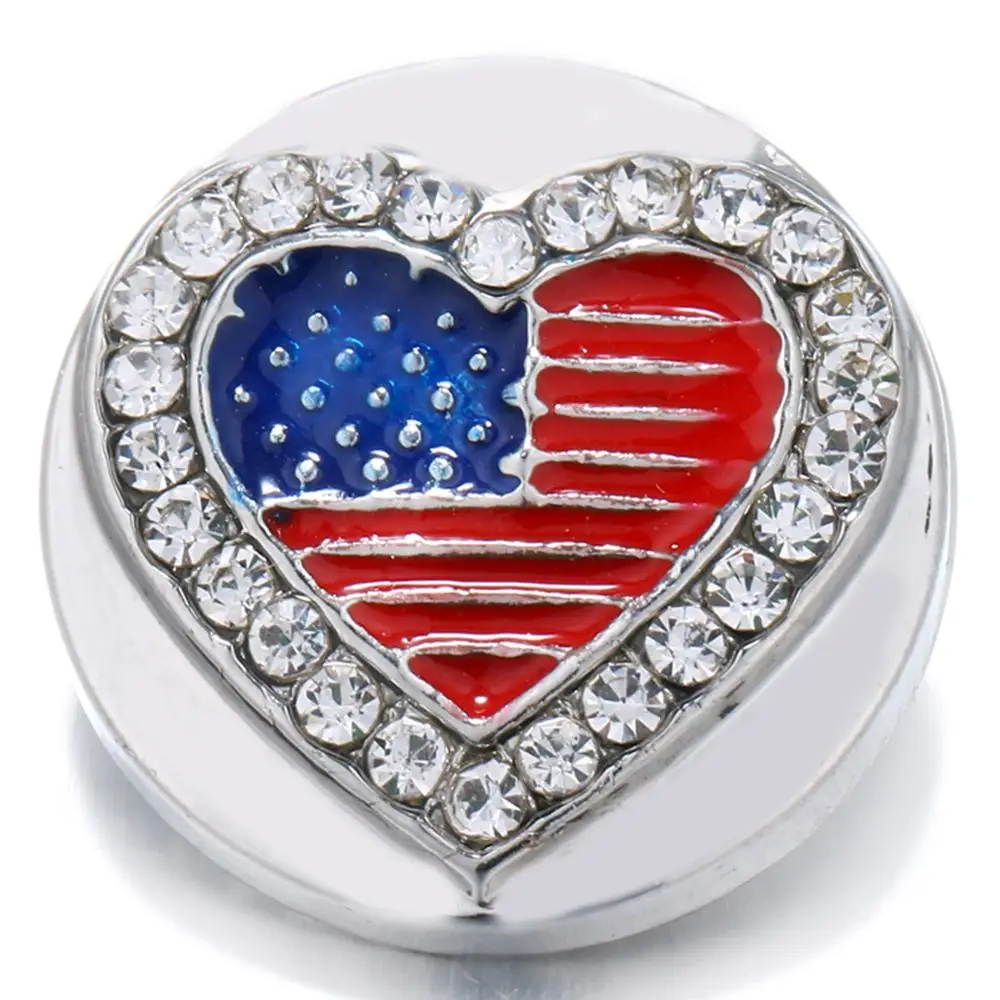 JaynaLee 20 мм Сердце Любовь США флаг имбирь защелки Fit Сменные оснастки украшения для женщин мужчин подарки GJS8111