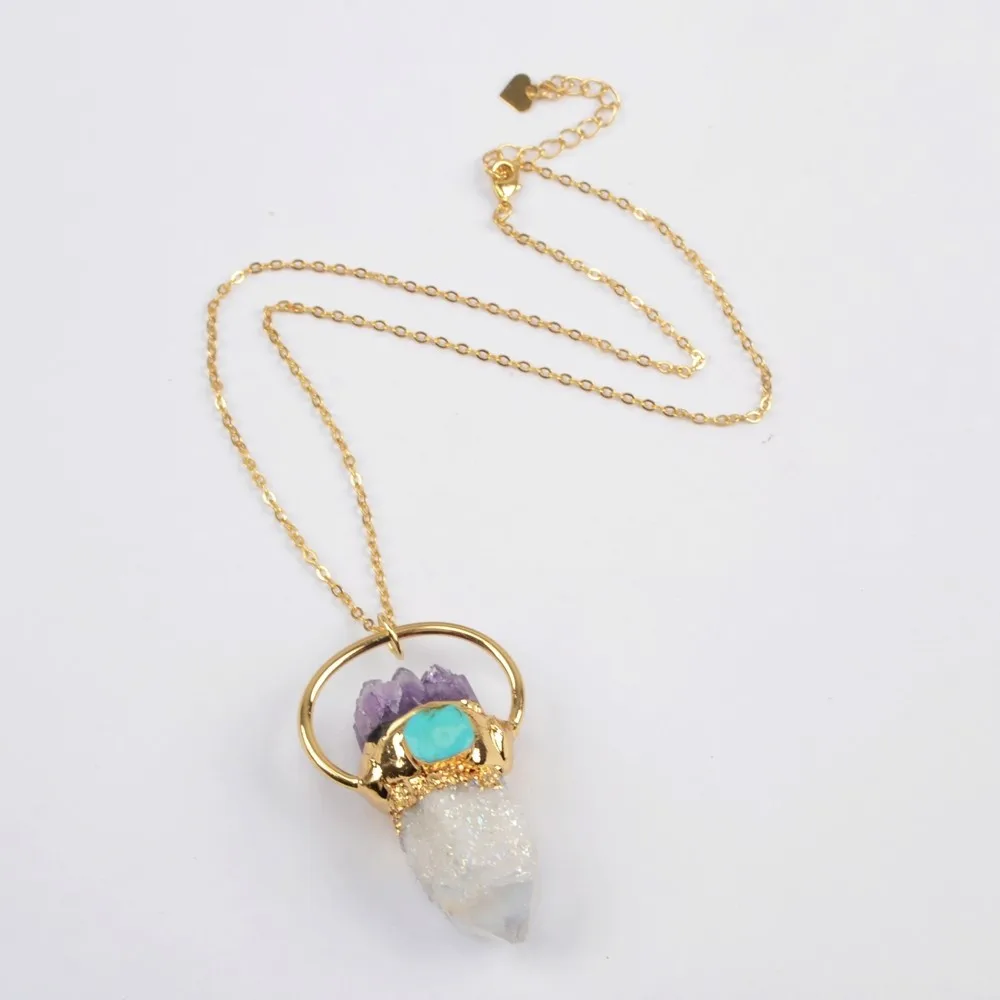BOROSA Ручной Работы Бохо позолоченный металлический Шарм Титан AB Хрустальный кварцевый острый конец с Бусы из аметиста и бирюзовый кулон оже...