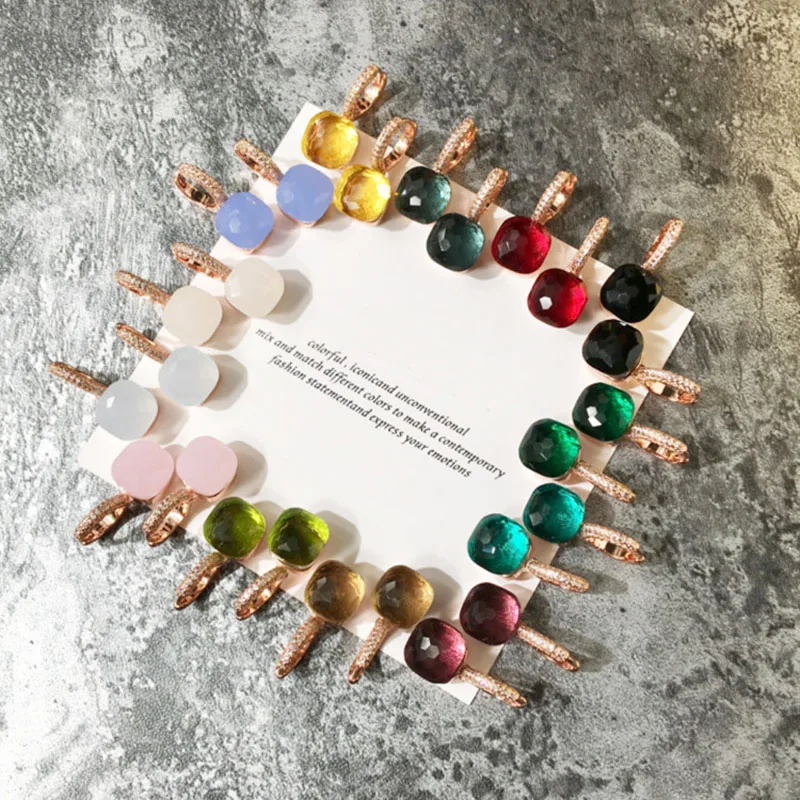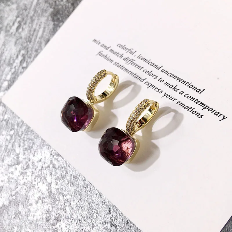 Женская мода многоцветные граненые хрустальные конфеты квадратные серьги золотой цвет цирконий камни капли воды серьги Рождественский подарок