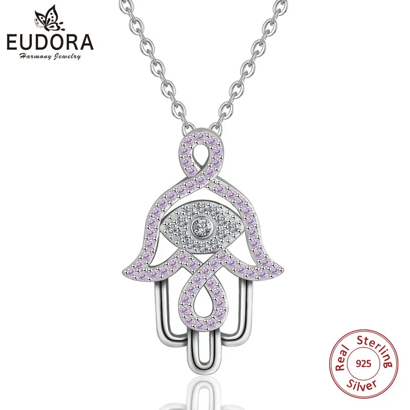 Юдора 925 пробы серебро Злой Глаз Хамса подвеска в форме руки Цепочки и ожерелья рука Фатимы розовый украшения CZ призывающий ангелов Fine Jewelry п...