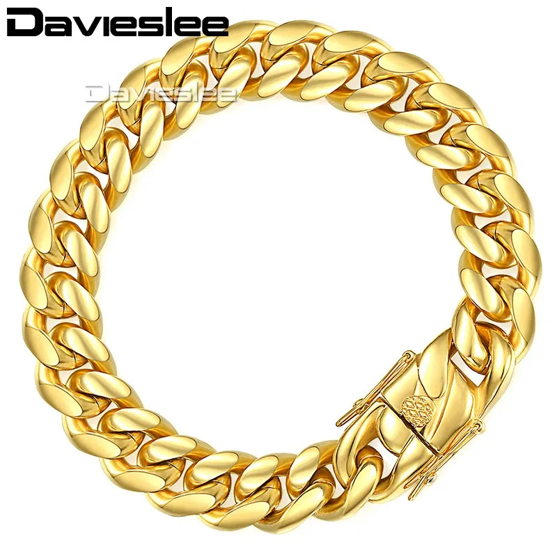 Davieslee Мужская браслет-цепочка Майами Снаряженная Кубинский 316L Нержавеющая сталь хип-хоп Цвет серебристый, Золотой Цвет 8/12/14 мм 9 дюймов LHBM111