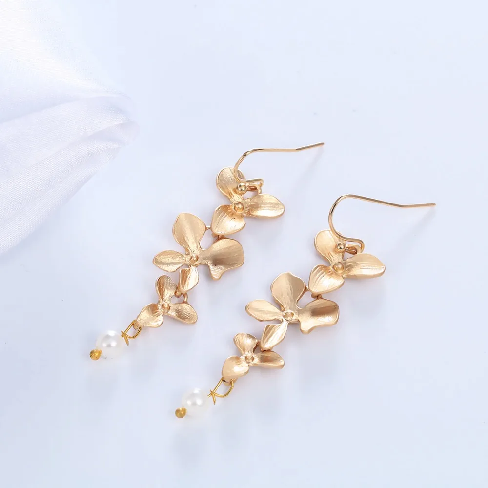 Винтажные корейские длинные висячие серьги с искусственным жемчугом и цветами орхидеи, модные элегантные серьги-подвески, подарок для девушек и женщин