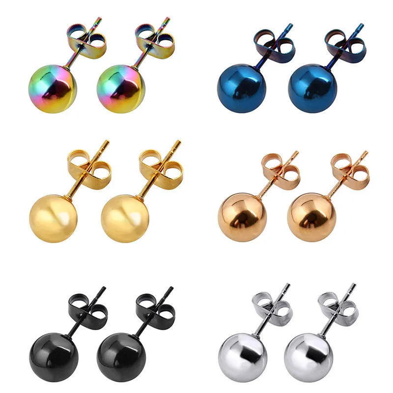 2 шт Панк геометрический шар из нержавеющей стали серьги гвоздики для женщин Готический простой круглый Шпильки для пирсинга уха женские се...
